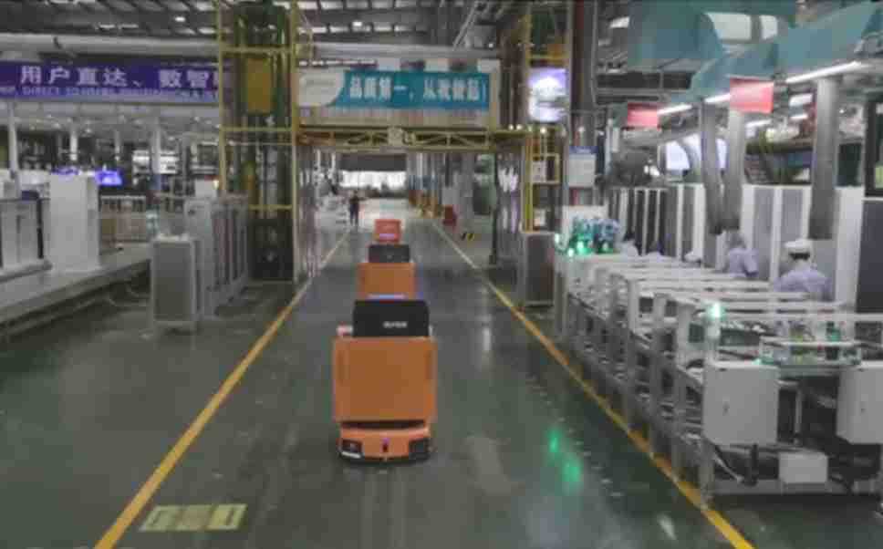 为车载冰箱物流配送打造的智能解决方案,,,包含产中物流通过潜伏举升AMR搬运至线边,,产后成品物流智能仓储,,,流程包含产中物流智能齐套入库,,线边安灯叫料AMR智能配送至线边,,成品入库、、、、出库,,通过无人堆高车机器人,,,智能仓储管理替代人工作业管理,,,,实现更高存储、、、更高效率、、更具柔性化的解决方案。。